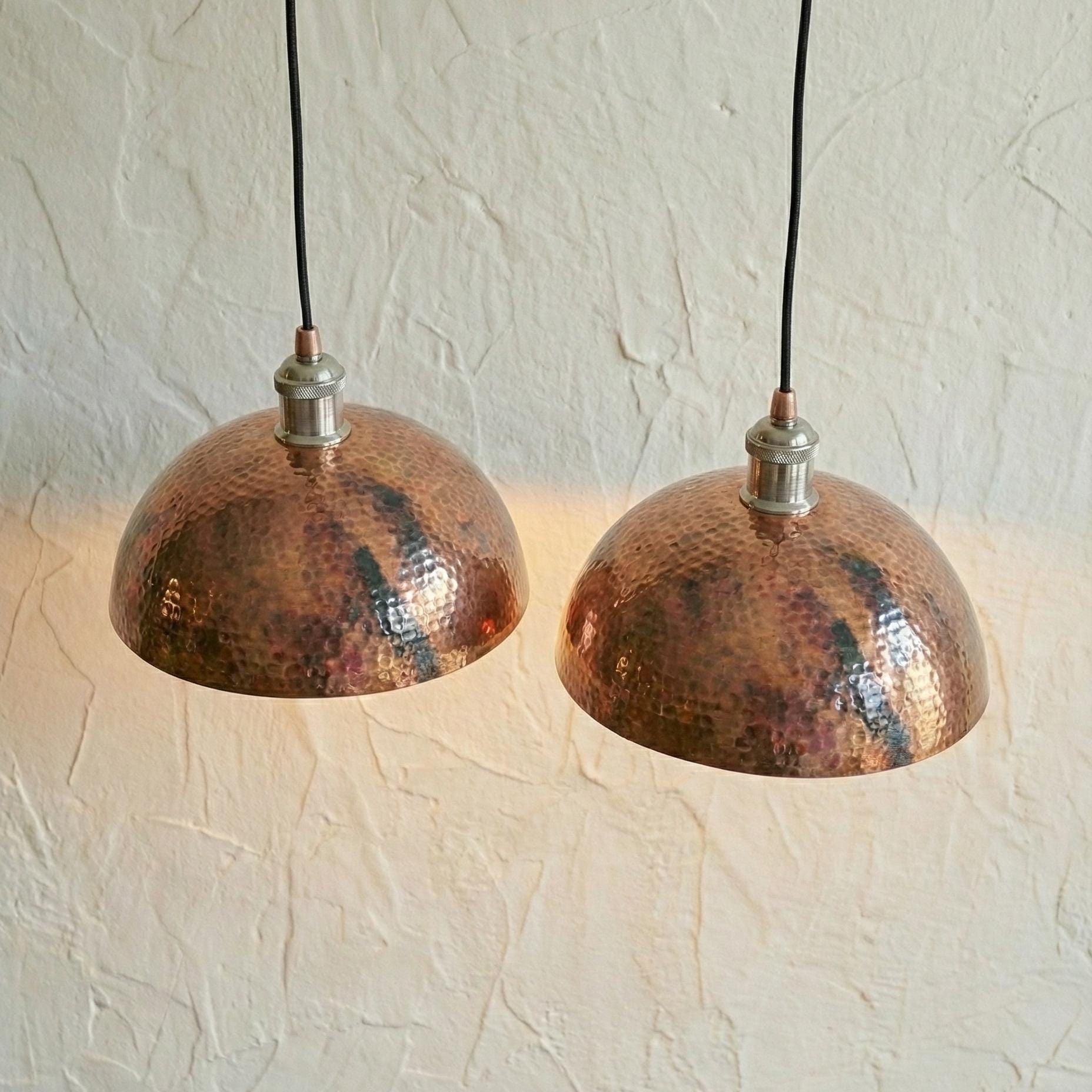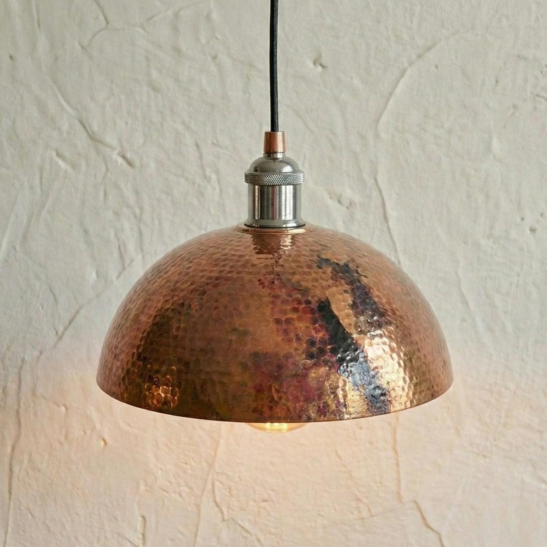 Oxidized Copper Pendant Light, Hammered Patina Ceiling Lamp, Rustic Industrial Dome, Burnt Copper Farmhouse Decor, Vintage Kitchen Fixture