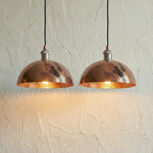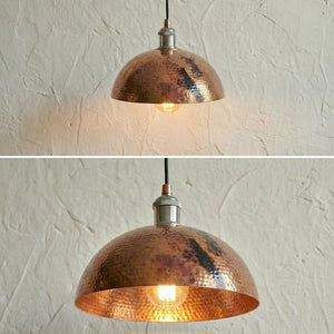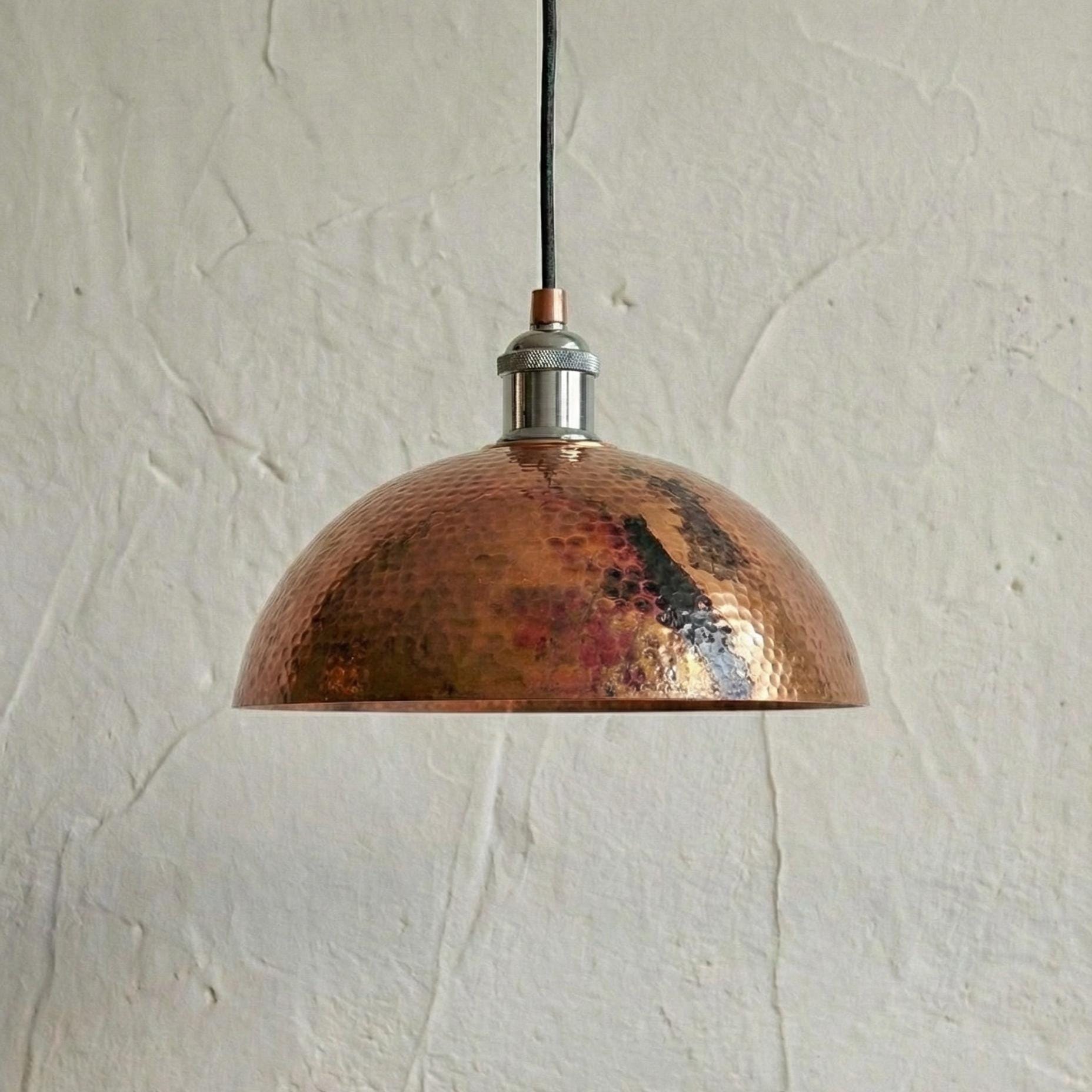 Aged Copper Pendant Light, Hammered Patina Ceiling Lamp, Rustic Industrial Dome, Burnt Copper Farmhouse Decor, Vintage Kitchen Fixture