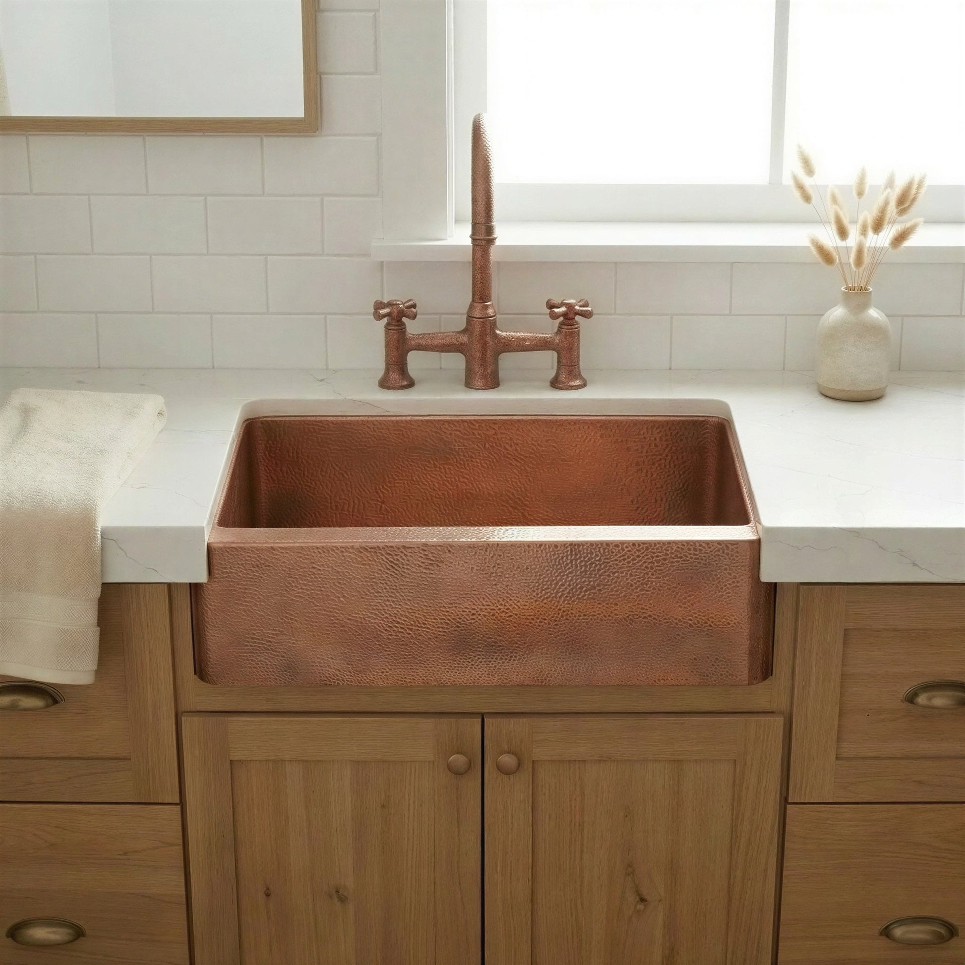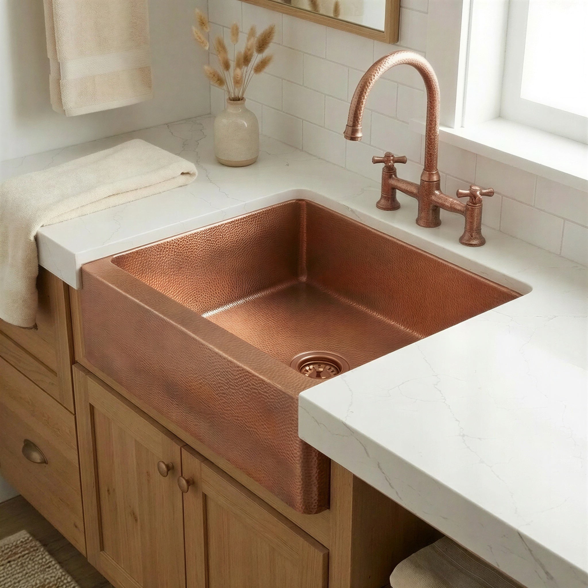 Hammered Copper Farmhouse Apron Sink, Unlacquered Single Bowl Kitchen Sink