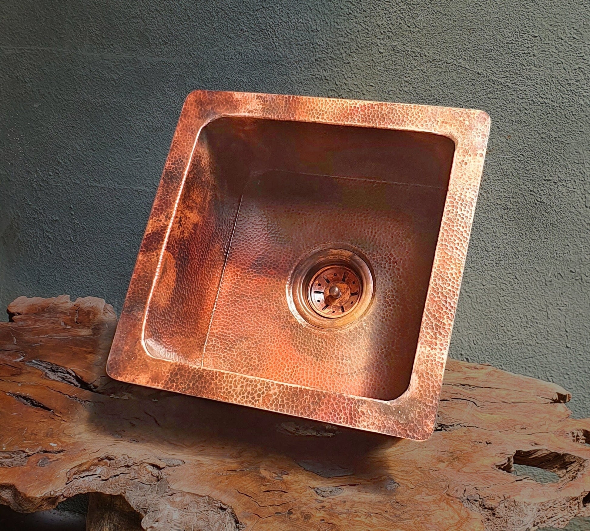 Hammered Copper Square Bar Sink, Kitchen Prep Basin, Rustic Farmhouse Drop In Sink