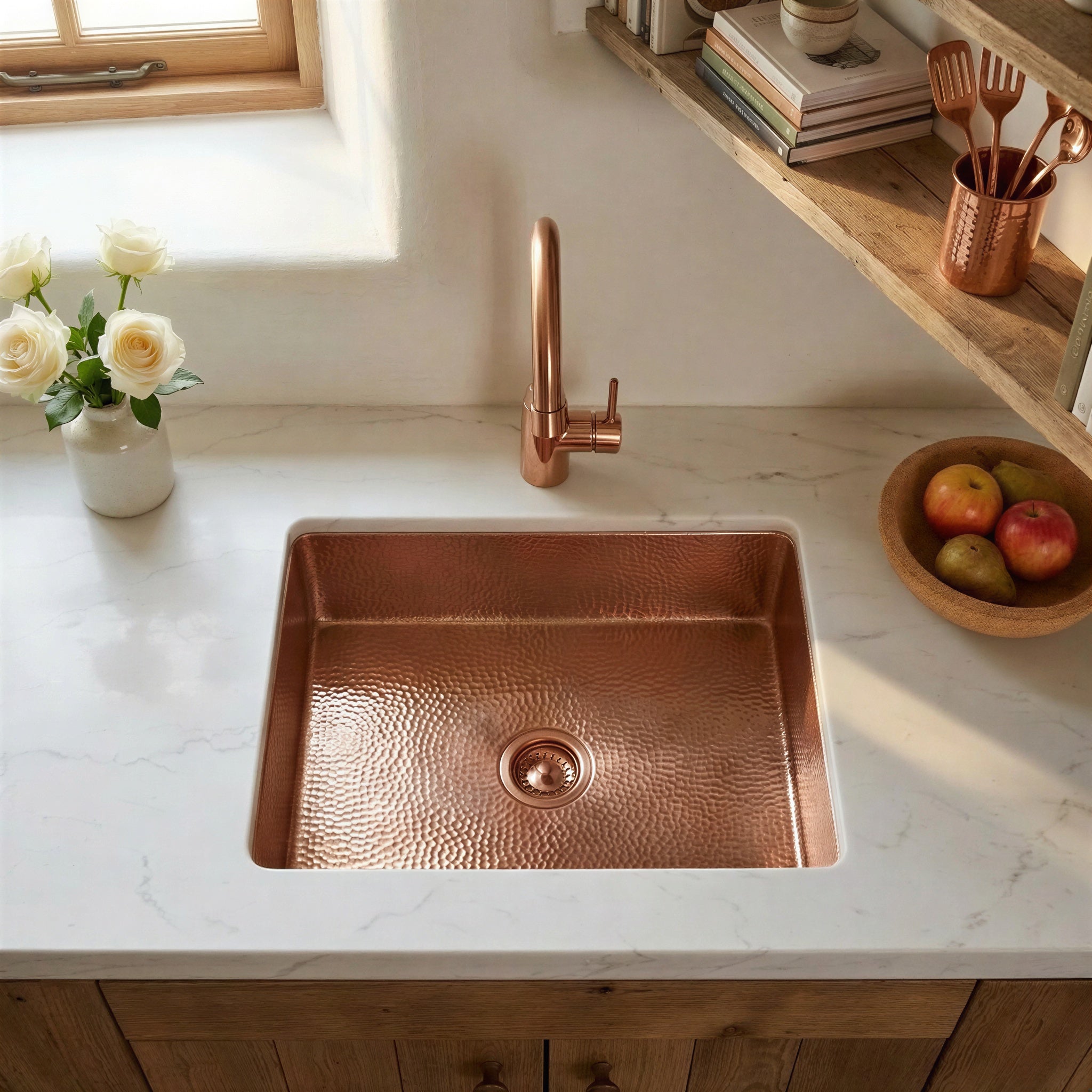 Hand Hammered Copper Drop in Sink | Undermount Bar Prep Basin | Rustic Metal Washbasin for Kitchen Island