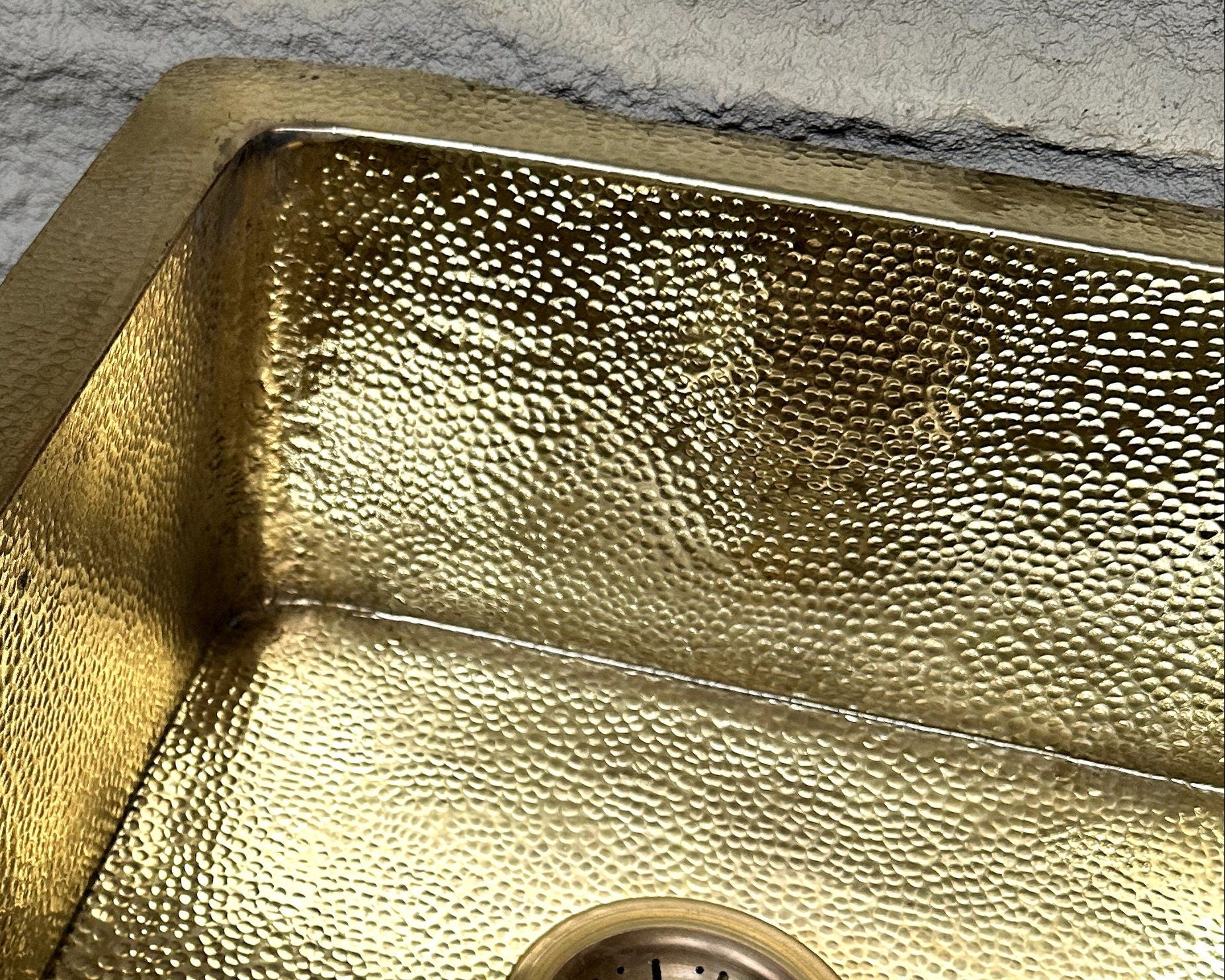 Solid Square Undermount Brass Kitchen Sink, Hammered Brass Kitchen Sink, Rectangular Gold Basin, Drop In Farmhouse Sink