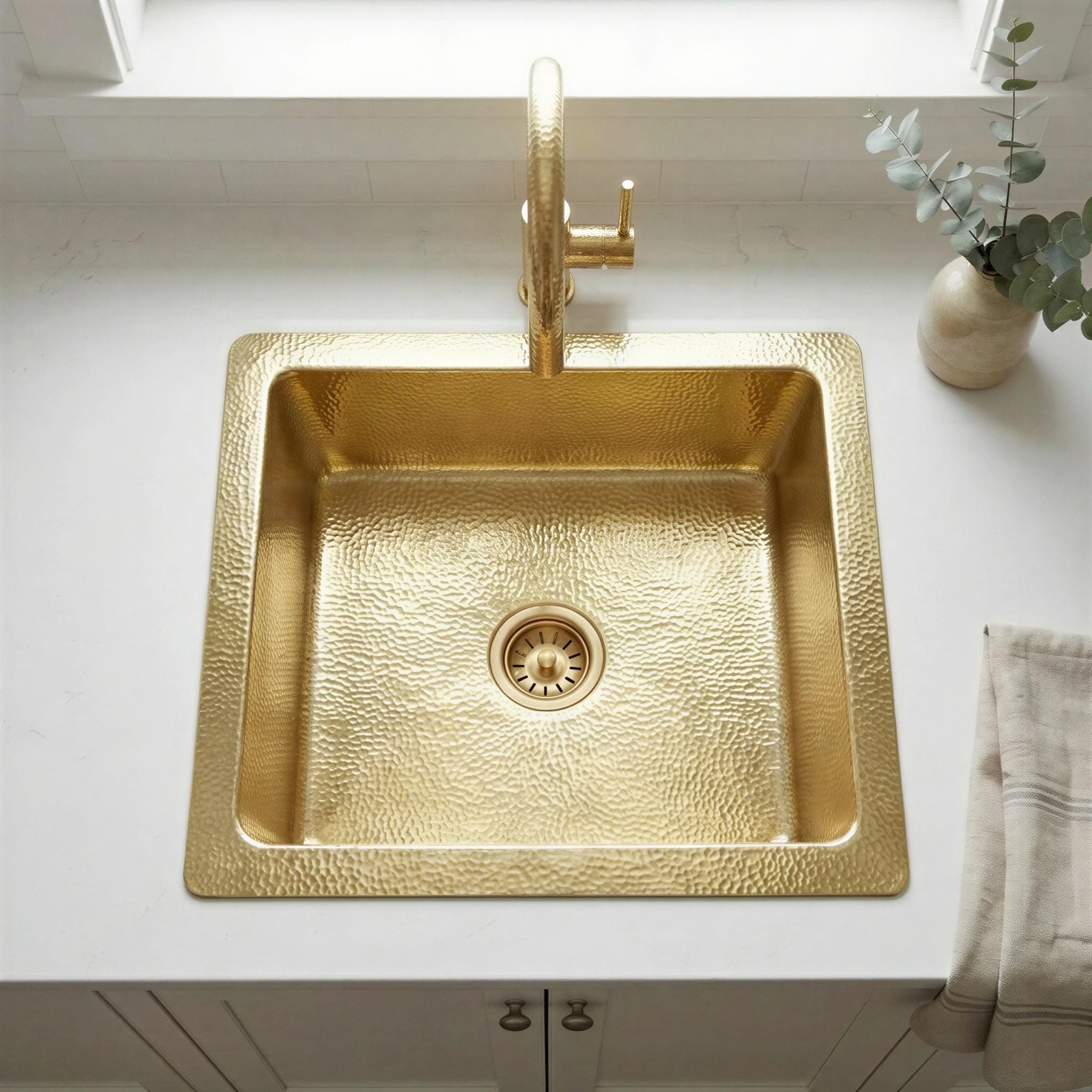 Square Brass Kitchen Sink, Hammered Brass Kitchen Sink, Rectangular Gold Drop In Farmhouse Sink